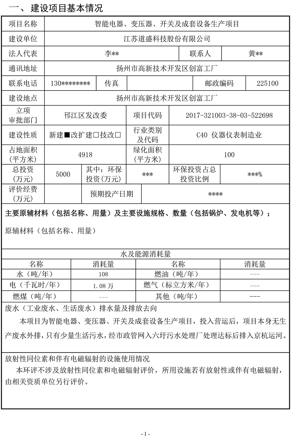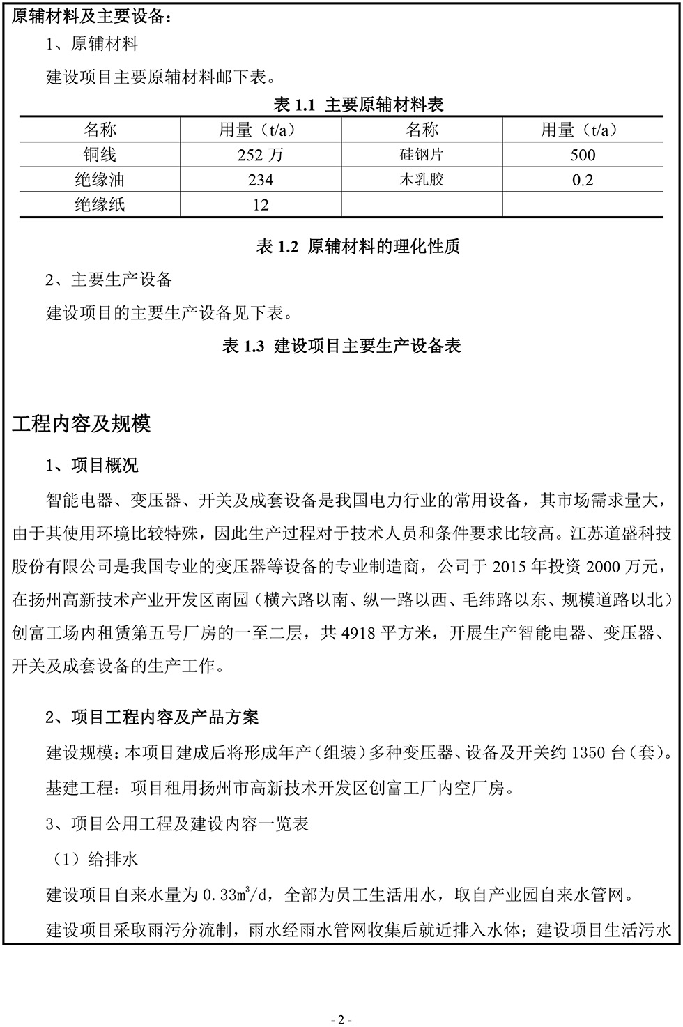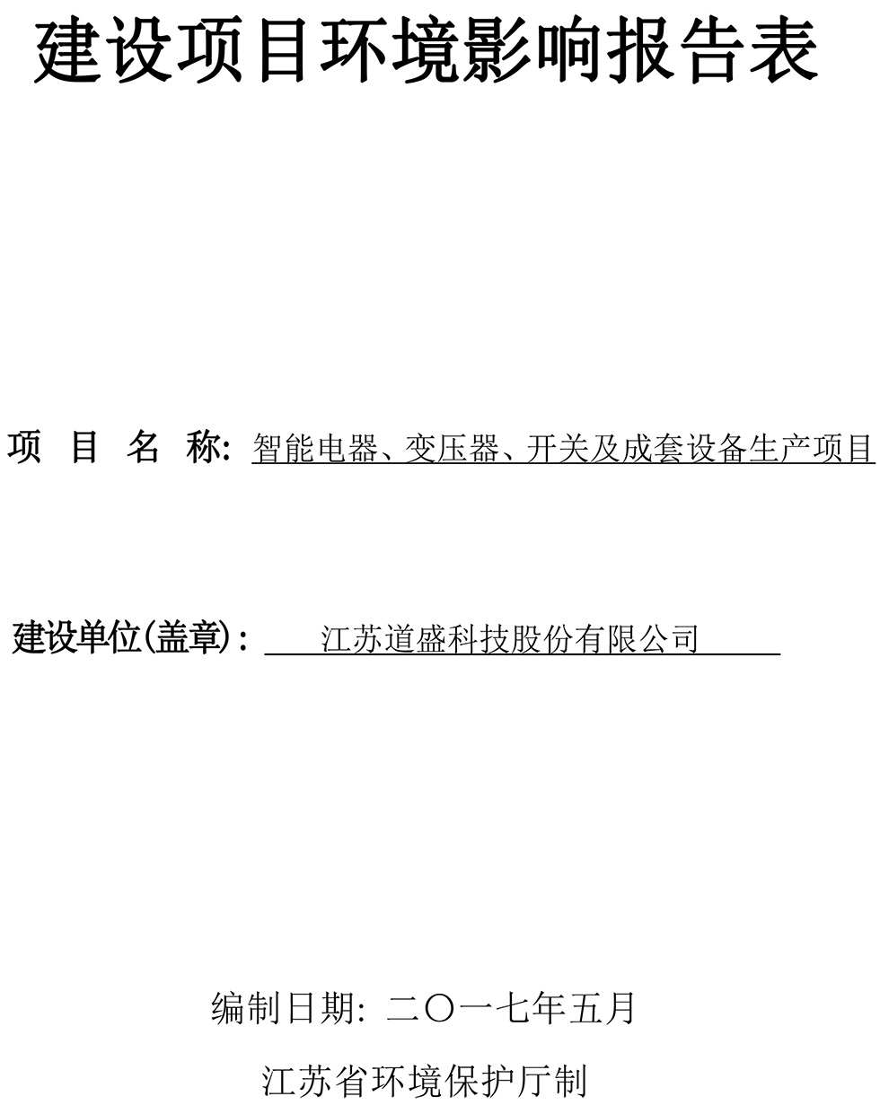 江蘇道盛科技股份有限公司 智能電器、變壓器、開關及成套設備生產項目報告表(公示版)